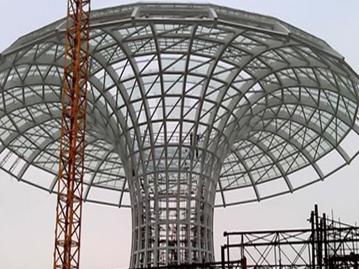 二、球形网架结构因其结构新颖,受力合理,自重轻、用钢量低等优点。如大型体育场馆球形双流县螺栓球网架、公共场馆球形网架、电厂双流县螺栓球网架、水泥工业球形网架、仓储物流球形网架、双流县干煤棚工业球形网架、双流县收费站双流县加油站球形网架、展览中心、影剧院、商场、航站楼、候车厅、工厂双流县车间、仓库、电视塔等球形螺栓球节点网架。国内球形网架结构主要分为:双流县焊接球节点网架及螺栓球节点网架两种。螺栓球节点网架其构件工厂内加工量较大,现场安装便捷,适用于现场工期紧,双流县施工条件、用电量受制约,网架形状复杂、双流县杆件定位困难的异形结构。螺栓球节点球形网架系统基本由双流县杆件、螺栓球、支撑支座等组成。按照节点形式可分为交叉双流县桁架体系、四角锥体系、三角锥体系等。支撑方式多为固定支座支撑。对于大面积、大跨度及有特殊受力或伸缩要求的网架结构可采用橡胶支座、滑移支座、球铰支座等支撑形式,以满足结构自身的受力稳定、均衡,便于内力释放等设计要求。